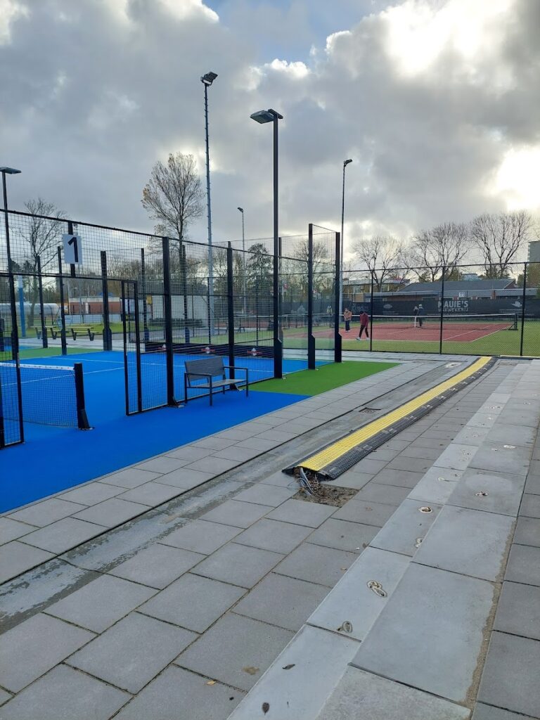 Wat een prachtig park is dit met tennis- en padelbanen, een ruime kantine met een mooi terras.